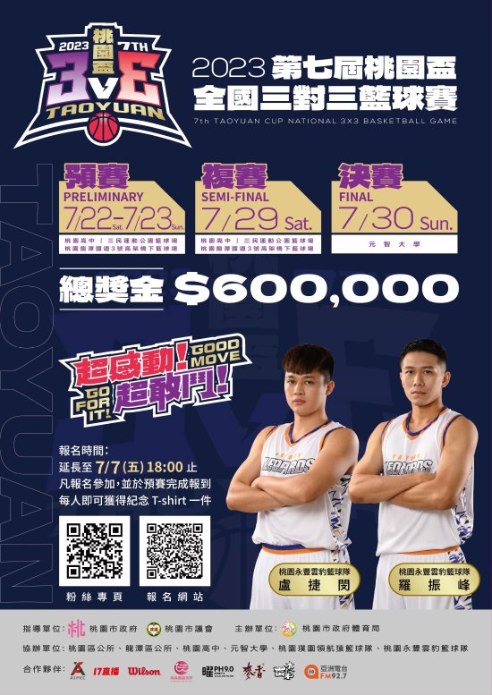 (三) 活動相關細節亦可上「桃園盃全國三對三籃球賽」臉書粉絲專頁(https://www.facebook.com/TAOYUANCUP3ON3)查詢。