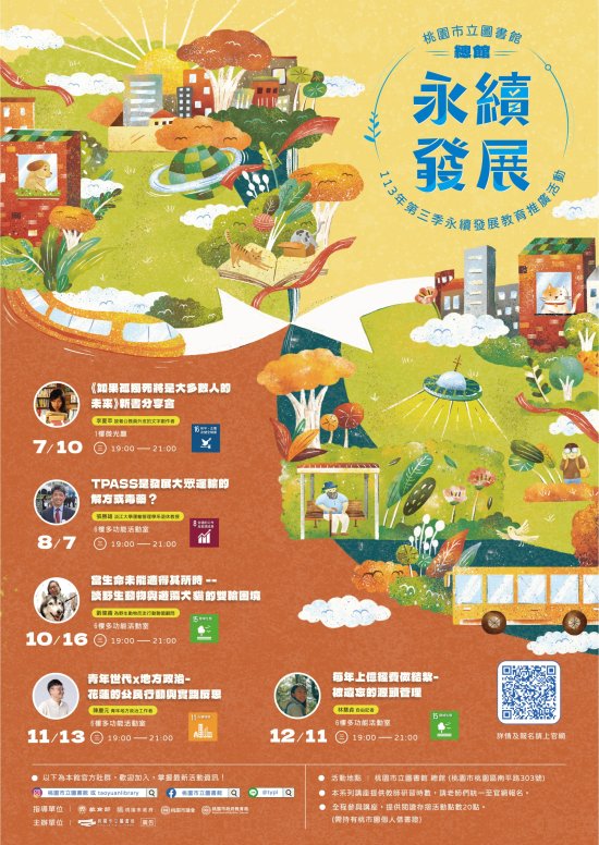 主旨: 檢送本館「總館 113 年第三季永續發展教育推廣活動」海報電子檔,惠請協助並鼓勵所屬同仁及學生踴躍參加,至紉公誼。