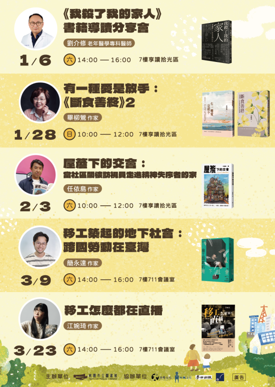 三、 請貴機關協助轉知並公告訊息,更多詳情及報名請至本館官網(https://www.typl.gov.tw/zh-tw/Activity/Content/5799)查詢,至紉公誼,不勝感荷。
